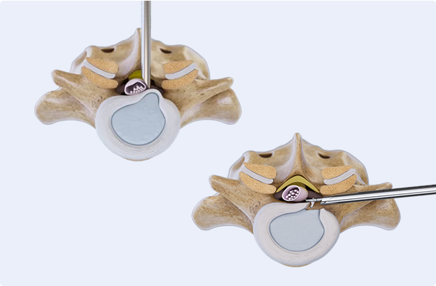 病変部をモニターで確認しながら、専用器具を用いて神経の圧迫を取り除くことを目的に行います。手術の適応は、診察所見やMRIなどの画像検査結果をもとに判断します。